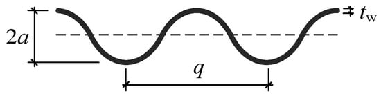where s is the unfolded length of a single sinusoidal wave, q is the wave length of a single sinusoidal wave, and a is the amplitude of the sinusoidal wave. Iz is the out-of-plain moment of inertia per unit length of the corrugated web about the neutral axis.