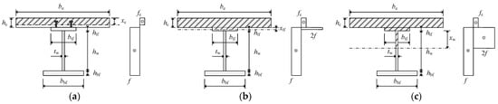 (b) when the plastic neutral axis located within the upper flange of the corrugated steel beam ((Abf − Atf) f ≤ behcfc < (Atf + Abf) f):
