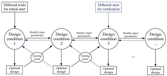 It should be noted that the optimization results acquired from the algorithm are not generally guaranteed as the global optimum since the problem involved is a nonconvex problem. In order to achieve the relative optimal results, different trials are supposed to be applied for the start of the general optimization procedure to ensure the value is relatively optimal. Also, the general optimization procedure can be initiated from different design conditions for further verifying the validity of the results.