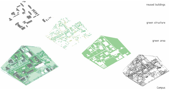Compact city strategies must be designed to generate a significant synergistic effect with state-of-the-art urban development strategies, not as a primary or alternative model. It is necessary to plan well-coordinated urban functions in a sustainable urban form to prevent the potential negative impacts of compact city policies, including traffic congestion, heat islands, and urban landscape degradation [1,4]. The University Campus, as an example of compact city planning with sustainability principles [37], either in the scale of the buildings inside the campus [38] or its brownfield conversion and park structure [39], represents the largest organized green area for the city itself, and its position in the narrower urban area plays a significant role in cooling.