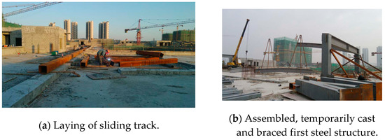 - Zhang, M.; Deng, C.; Song, Z. Application of Cumulative Pushing and Sliding Technology in Large Span Steel Truss Construction. Construciton Technol. 2020, 49, 33–36. (In Chinese) [Google Scholar]
