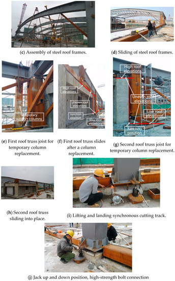 The adoption of overall sliding and partial column replacement sliding eliminates the need for full scaffolding, thereby reducing construction costs. In conventional methods, the cost of renting and leasing the scaffolding, including labor and material expenses, is incurred. However, the overall traction and cumulative sliding method for column replacement only incurs costs for renting tracks, temporary supports, hydraulic jacks, crawler-type heavy-duty transporters, and labor for sliding. The ability to concurrently carry out civil construction and installation activities significantly shortens the construction period, resulting in substantial savings in labor and financial costs.