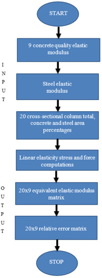 The essence of this program can be described in the Figure 4 flowchart by integrating the concrete qualities and steel elastic modulus application on the 20 different types of cross-section areas given in Figure 2 and Table 1.
