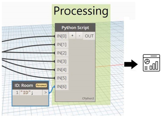 This algorithm can support data exchange between BIM and the selected sensor network. For this aim, Dynamo Visual Programming is used to extend the power of the Revit Autodesk platform by providing access to the Revit API (Application Programming Interface) more effectively and efficiently. Dynamo is an excellent tool. Its limits are the boundaries beyond which the Python sphere is necessary. Python is an easy-to-learn, powerful programming language. It has efficient high-level data structures and a simple but effective approach to object-oriented programming [44]. Excessive use of Dynamo nodes often results in a severe slowdown of data processing, but with Python code, these issues are significantly reduced. One of its greatest strengths is its extensive standard library that provides tools suitable for many tasks, including modules for creating graphical user interfaces or connecting to relational databases. The latest innovation is the possibility of installing Python packages within Dynamo. The Pandas package to standardize the process [45] is strategic.