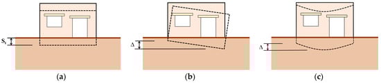 Types of settlements: (a) uniform settlement, (b) tilt, and (c) non-uniform settlement.