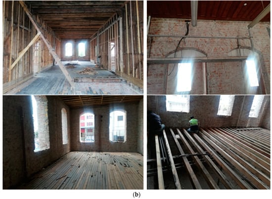 Some views of the building: (a) before damage to the building and (b) restoration and during the repairing and strengthening.