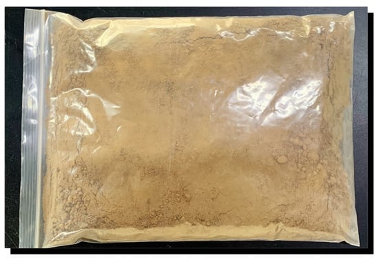 The test soil material, shown in yellow, was gathered from the slope of a cutting canal in northern Xinjiang, China. In accordance with the Standard of Geotechnical Testing Methods (GBT50123-2019) [], the basic physical and mechanical properties such as water content, density, and liquid-plastic limit of soil materials were measured by methods such as drying method and combined determination of liquid plastic limit method (Table 2). Through granule analysis test [], it was found that the content of fine particles (<0.075 mm) in the soil material was 21.1%, ranging from 15% to 50%, and the fine particles were mainly composed of silt particles (0.075 to 0.005 mm). Therefore, the soil belonged to the silt. In addition, Zn was used as a contaminant, and Zn-contaminated soil was treated manually by adding Zn solution [,].