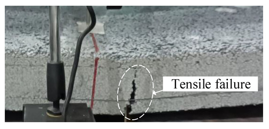 - At the maximum bending moment of the insulation panel, bottom cracks were observed, primarily in the form of straight single cracks. The structure exhibited significant deformation in the tensile steel wire mesh upon reaching the point of failure. Furthermore, during the destruction of the structure, a few insulation particles near the crack became dislodged.