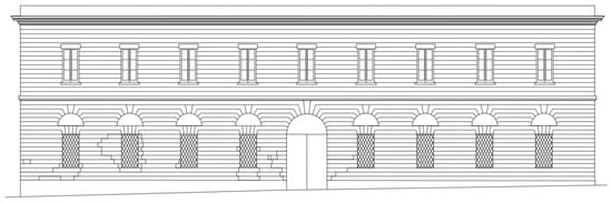 The south and north facades (Figure 3 and Figure 4) are symmetric with respect to the centerline and they are characterized by a sequence of windows. The west facade (Figure 5) is plastered and less symmetric than the other ones.