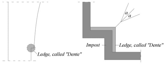 The groins’ edges coincide with the bisector of the angle; they are called impost (“appese”) and they protrude, forming a ledge, called “dente” (Figure 10) [].