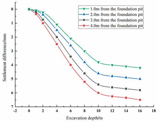 - As the excavation depth of the foundation pit increases, the horizontal displacement of the diaphragm wall increases, the settlement difference of the building increases and the building inclines toward the middle of the foundation pit.