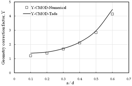 Also, the geometry correction factor for CMOD was numerically estimated and compared according to Tada et al. [31] as follows: