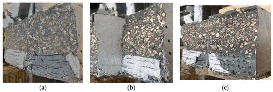 The fracture surfaces of beams; (a) MC-HSC1Q/0.3, (b) MC-HSC1T/0.3, and (c) MC-HSC1M/0.3.