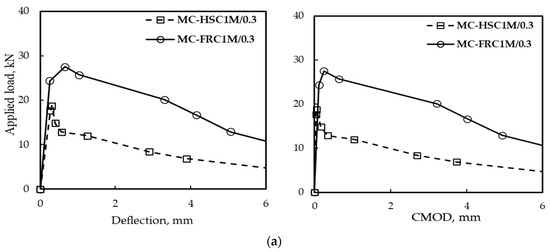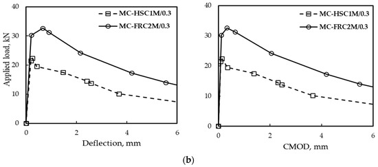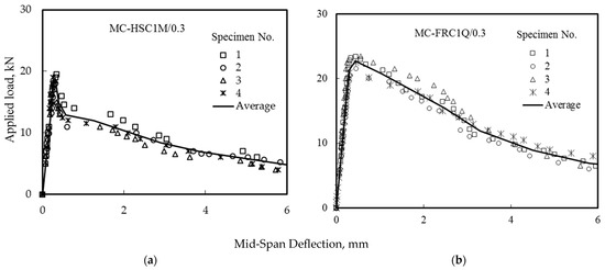The average load–deflection curves: (a) MC-HSC1M/0.3 and (b) MC-FRC1Q/0.3.