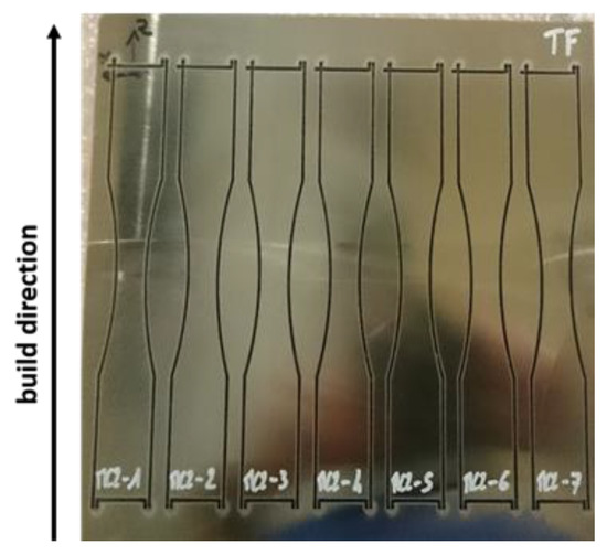 An example of samples before being completely detached from the built walls 4 mm thick. The build direction is perpendicular to the substrate.