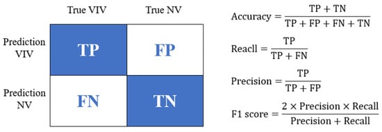 To assess the advantages of the proposed method algorithm over conventional algorithms, four metrics are employed: accuracy, recall, precision, and F1 score, which play a crucial role in evaluating the quality of VIV recognition results (see Figure 8). Each of these metrics is measured on a scale from 0 to 1, where a higher value signifies a superior algorithm model.