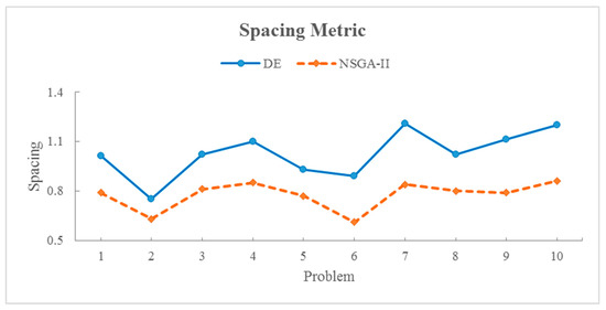 Figure 8. The comparison of the solution algorithms based on the spacing metric.