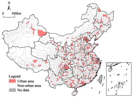 Counties (including counties, districts, county-level cities, banners, special zones, and forest areas) were used as the study units (hereafter referred to as county-level units), with a total of 2846 (Figure 1), and the study area did not comprise the Hong Kong SAR, Macao SAR, or Taiwan Province. The data were obtained in 2020. The original data were mainly obtained from the 2020 China Population Census Sub-County Information. Among them, districts are municipal districts of municipalities directly under the central government, sub-provincial cities, and prefecture-level cities, with urban functional territories as the main focus, which are referred to as urban areas.