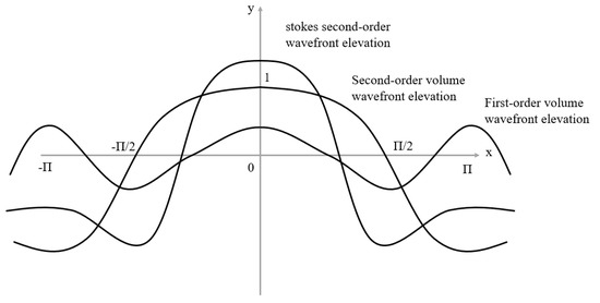 The velocity potential and wavefront elevation of the second-order theory of Stokes’s waves can be expressed as follows: