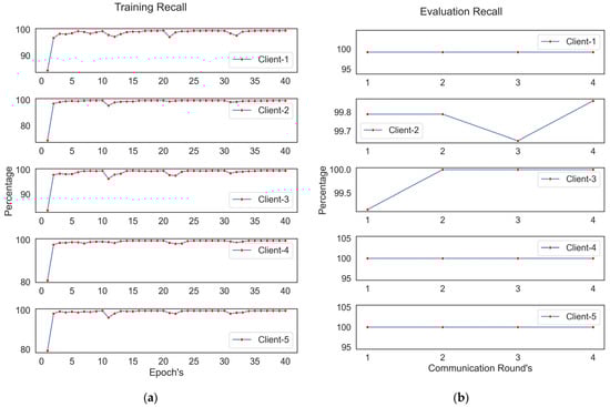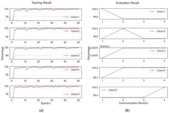 For Non IID data (a) Training recall; (b) evaluated recall.
