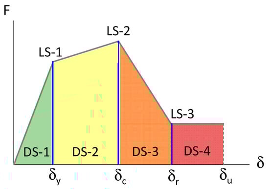 Schematic representation of limit stated (LS) and damage states (DS) in this study.