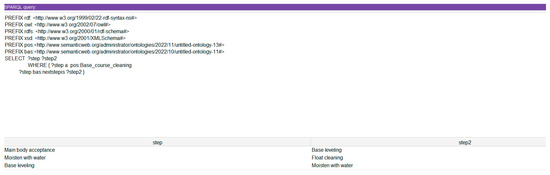 The step sequence knowledge query of the base-course cleaning activity within the construction process information ontology for infilled wall masonry is as follows: