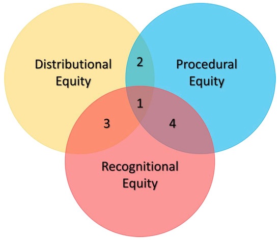 The research’s proposed framework for inclusive design strengthens the three social justice pillars listed in Meerow’s tripartite framework for social justice [2]. It became apparent that the prevalent conceptions of equity are often linked to a distributional orientation, with less emphasis on the recognitional and procedural aspects, when this framework was initially employed to analyze how much cities focus on equity. Here, the distinction between equity and equality is significant [21,22]. While equity refers to a fair conclusion that need not be equal, equality refers to equal measures regardless of the outcome. For instance, using health as an example, an equity approach would encourage measures such as green spaces, healthcare, and social work in underprivileged rather than privileged neighborhoods. In contrast, an equality approach would offer all neighborhoods the same number of measures [23]. An approach that includes equity and equality fosters wellbeing and builds social capital. This regenerates underserved communities and increases proprietary engagement within communities to improve the quality of life. Economic development promotes opportunities for fair distribution of capital, labor, and resources.