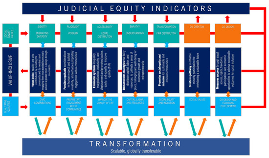 Value-inclusive design model: judicial equity indicators and transformation value.