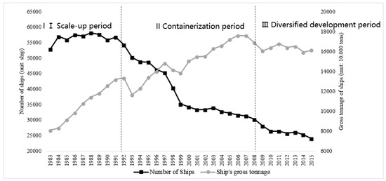 This is most evident in the steady decline in the number of incoming vessels and the slowdown in the growth rate of the total tonnage of vessels. The number of incoming ships and the tonnage of the ships declined during this period, as evidenced by the fact that passenger transportation, commercial offices, tourism and leisure functions began to play a role. The study found that the Tokyo Bay port area went through three stages: expansion, containerization, and diversification, and the port area will adjust the functions of the port in accordance with economic development (Figure 3).