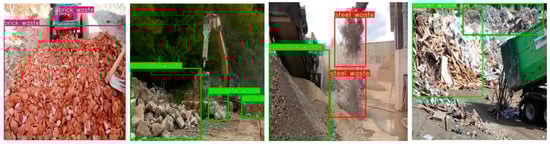 A diverse collection of 1003 images and videos from construction sites and various Internet sources was gathered to train deep learning algorithms for object detection in construction waste scenarios. The dataset included categories like brick waste, concrete waste, steel waste, timber waste, and mixed waste, totaling 549 images after filtering for quality. The images were divided into training (70%), validation (15%), and testing (15%) sets. The dataset was labeled with five specified labels. This approach addresses the limitations of existing image datasets in the computer vision community and aims to improve object detection in construction waste scenarios. Figure 2 shows the construction waste dataset.