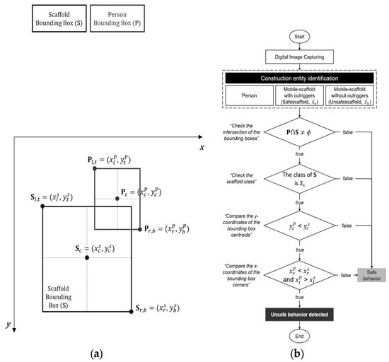Typically, the construction sector has been using safety refresher courses to educate workers on how to safely manage scaffolds []. OSHA provides thorough requirements and recommendations for designing, dismantling, and inspecting scaffolds []. Many researchers have devoted their interest to developing innovative methodologies for improving scaffold system monitoring on job sites. For instance, Sakhakarmi et al. proposed a machine learning (ML) system that uses strain data from columns of scaffolding to predict safety conditions []. To recreate and recognize scaffolds from point cloud data, a three-dimensional feature descriptor was developed to define linear straight-shaped objects []. Similarly, Jung et al. used image-processing techniques to create a failure detection method for small-scale scaffolds []. While many researchers have explored the structural failure of temporary facilities using IoT technologies, there is still a lack of monitoring for safety rule violations that involve the detection of visible defects in temporary structures before work commences. Thus, this study selected the mentioned case to validate the proposed concept of ensuring safety rules compliance before the start of work.