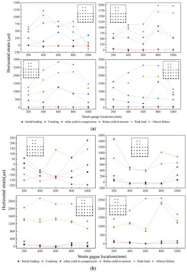 | Strain in Vertical Steel | Strain in Horizontal Steel | Strain in Vertical Steel | Strain in Horizontal Steel | Strain in Vertical Steel | Strain in Horizontal Steel | ||