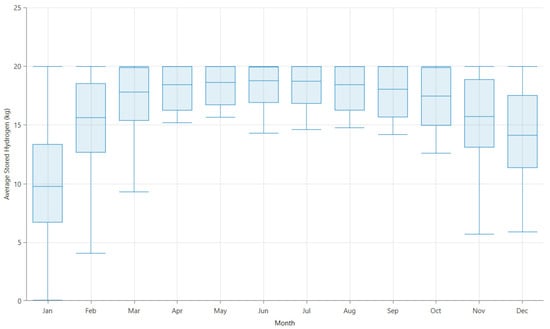 Average monthly stored hydrogen in case of using Tongwei 415 Watt with 15 kW FC.