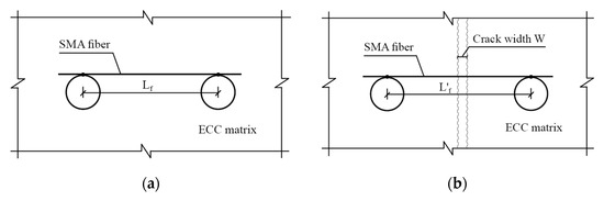 Schematic diagram of SMA fiber deformation. (a) Before cracking. (b) After cracking.
