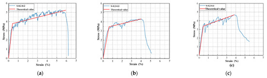 Comparison of theoretical and experimental values. (a) S-0.2-0.2. (b) S-0.2-0.3. (c) S-0.2-0.4.