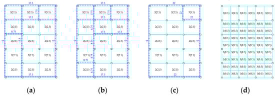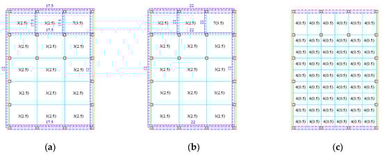 According to the actual size and load plan layout of RC frame structures, finite element models were established, as displayed in Figure 11.