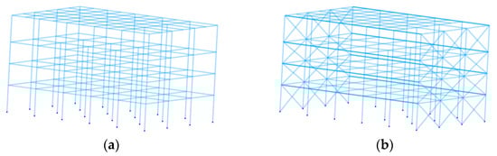 Finite element models of RC frame structures. (a) KJ1; (b) KJ2.