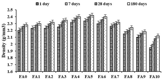 Density of alum sludge and fly ash-based geopolymer mortar.