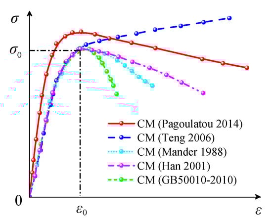 The stress–strain relationship of concrete under axial compression can be seen in Equation (11) as