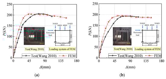Comparison of the load–displacement curves: (a) SRCF; (b) PSRCF [].