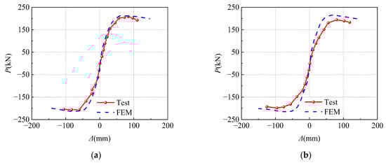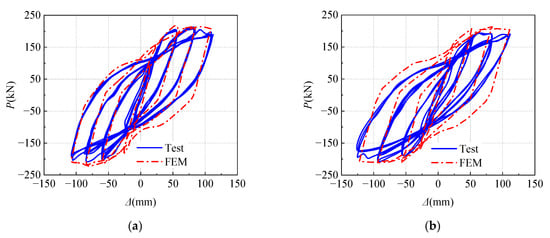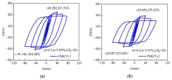 Comparison of the hysteretic curves: (a) SRCF; (b) PSRCF.