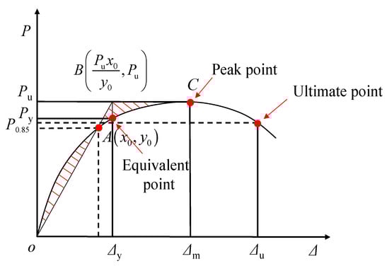 Researchers often quantify the deformation properties of specimens by using the ductility coefficient (μ) []. The calculation formula is shown as follows