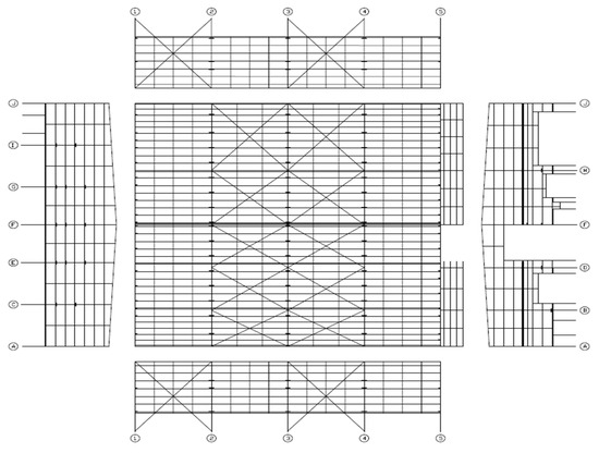 The final subprocess in the design phase is generating the 2D CAD drawing, as shown in Figure 6. Information on the steel connections was incorporated together with the floor plans, axis elevations, and other details for the manufacturing process, as shown in Figure 11. This subprocess required 30 h each from the senior and junior draftsmen.