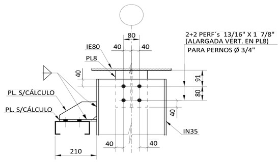 The connections per node were calculated, as shown in Figure 10. The completion of this subprocess required 40 h of calculations by a senior engineer, 50 h of work by a junior engineer, and 40 h of assistance by a junior draftsman.