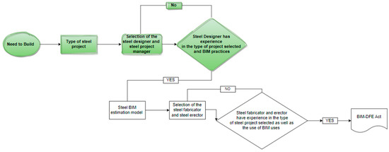 To effectively manage a project, the project type (industrial, commercial, public, etc.) must be selected in the planning phase. A notable process in BIM-DFE is the selection of a project manager to assume the role of a design engineer, who possesses skills and experience in BIM projects. If no qualified project manager is found, then another search is conducted. This is a basic requirement because the project manager is tasked with generating the 3D estimation model [1].