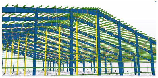 Project 2 encompasses a steel construction, showcasing a range of structural components similar to Project 1 (Figure 16). Detailed project characteristics are provided in Table 1.