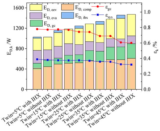 4.3. Effect of Different Working Conditions on Exergy Destruction and Exergy Efficiency of Each Component