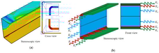 Establishment of component-based models for cold-formed steel channel: (a) Stress distribution; (b) Component-based model.