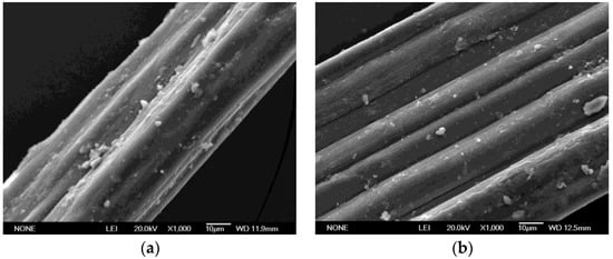 Achievements have also been made in the study of plant fibers for soil modification. Agricultural waste fibers were used to modify the soil. When the fiber content was 0.5 v%, the compressive strength and durability of the soil block were significantly enhanced []. Yetgin et al. [] found that straw fibers could improve the mechanical properties of the mud and that the compressive and tensile strengths of the soil blanks increased and the shrinkage decreased with the increase in fiber content. Liu Junxia et al. [] pointed out that the original jute fiber had no obvious effect on the improvement of the flexural strength of raw-soil-based wall materials, while the modified jute fiber could improve the mechanical properties of raw-soil-based wall materials.