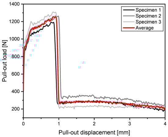 Although the geometry of the rovings was not exactly the same and the pull-out test was conducted on three specimens, the experimental results are considered to be representative because all specimens exhibit very similar behavior. This indicates that the geometry of the tested rovings was not much different.